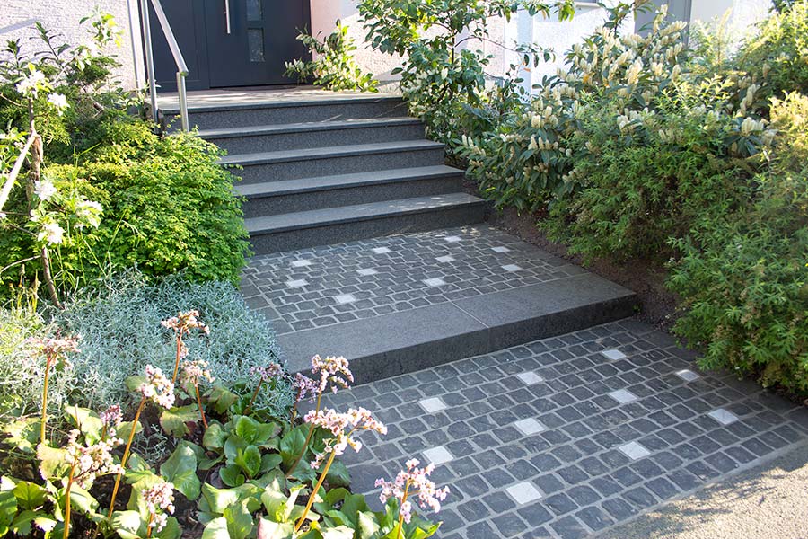Der Eindruck zählt! Wer mit Naturstein baut, baut nicht nur schöner, er baut auch wirtschaftlicher. Naturstein muss nicht schwer sein, wie man fälschlicherweise meint. Man kann ihn optisch durch seine Farbe und eine geeignete Oberflächenbearbeitung sehr sanft und weich in einen Neu- oder Altbau einarbeiten. Die Gestaltungsmöglichkeiten mit Naturstein kennen keine Grenzen. In vielen Fällen lässt sich Architektur und Naturstein in Einklang bringen.
